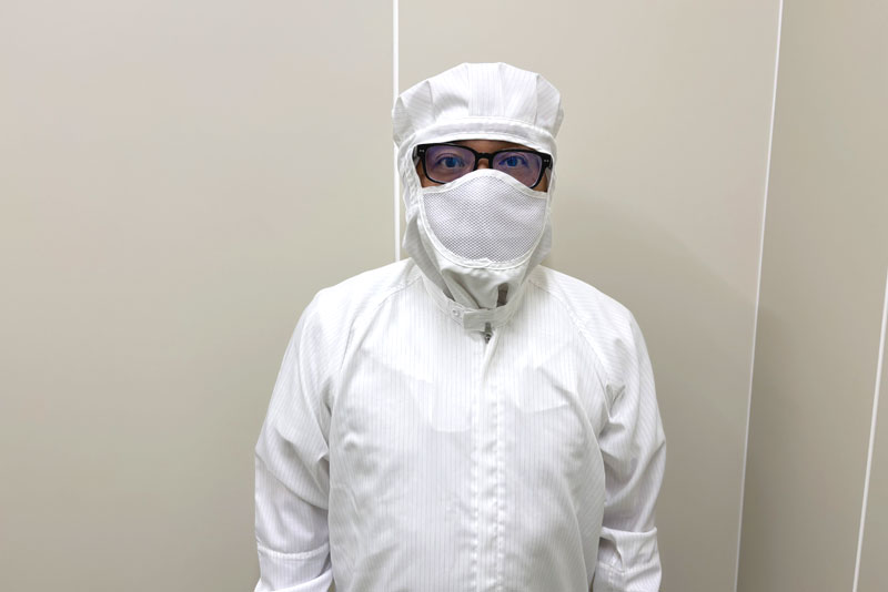・クリーンウェアに着替え、医薬品製造エリアの清掃