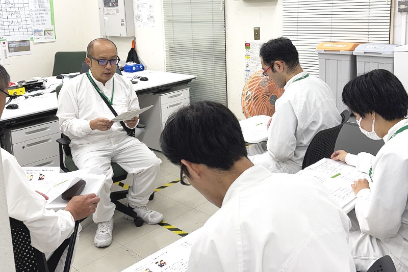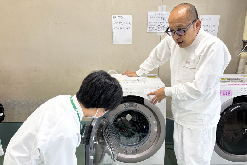 安全第一を肝に銘じています。作業中や移動中の怪我が無いように気配りすることは勿論、心身の健康状態も必ず確認し、日々の業務に臨んでいます。また、わかりやすく説明することを心掛けています。口頭では理解が難しいことは、図やイラストを使って丁寧に説明し、私自身がその作業をやって見せます。その結果、難しいモップの数量管理など、多くのことが出来るようになり、成長を実感しています。